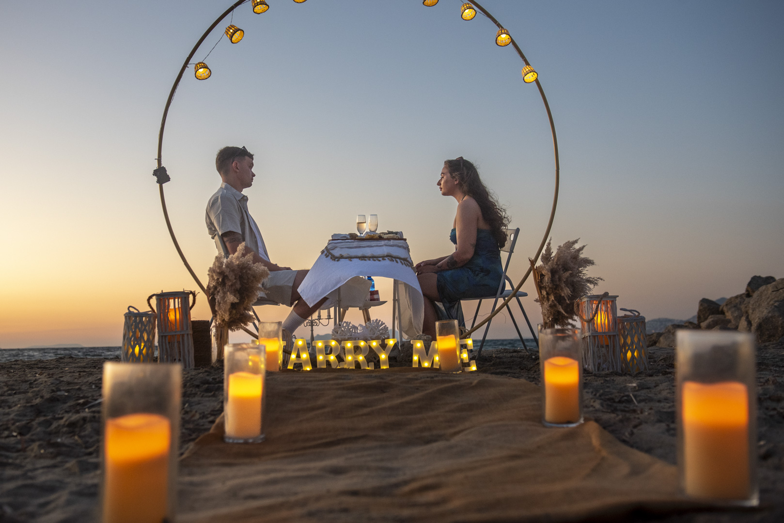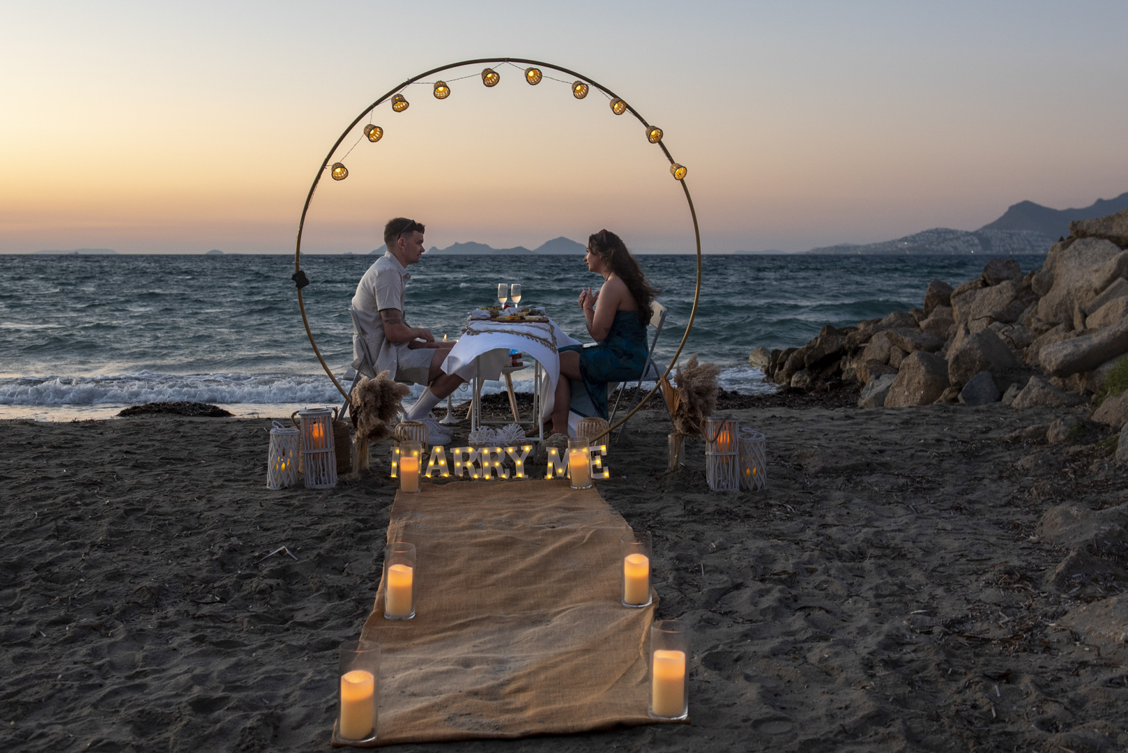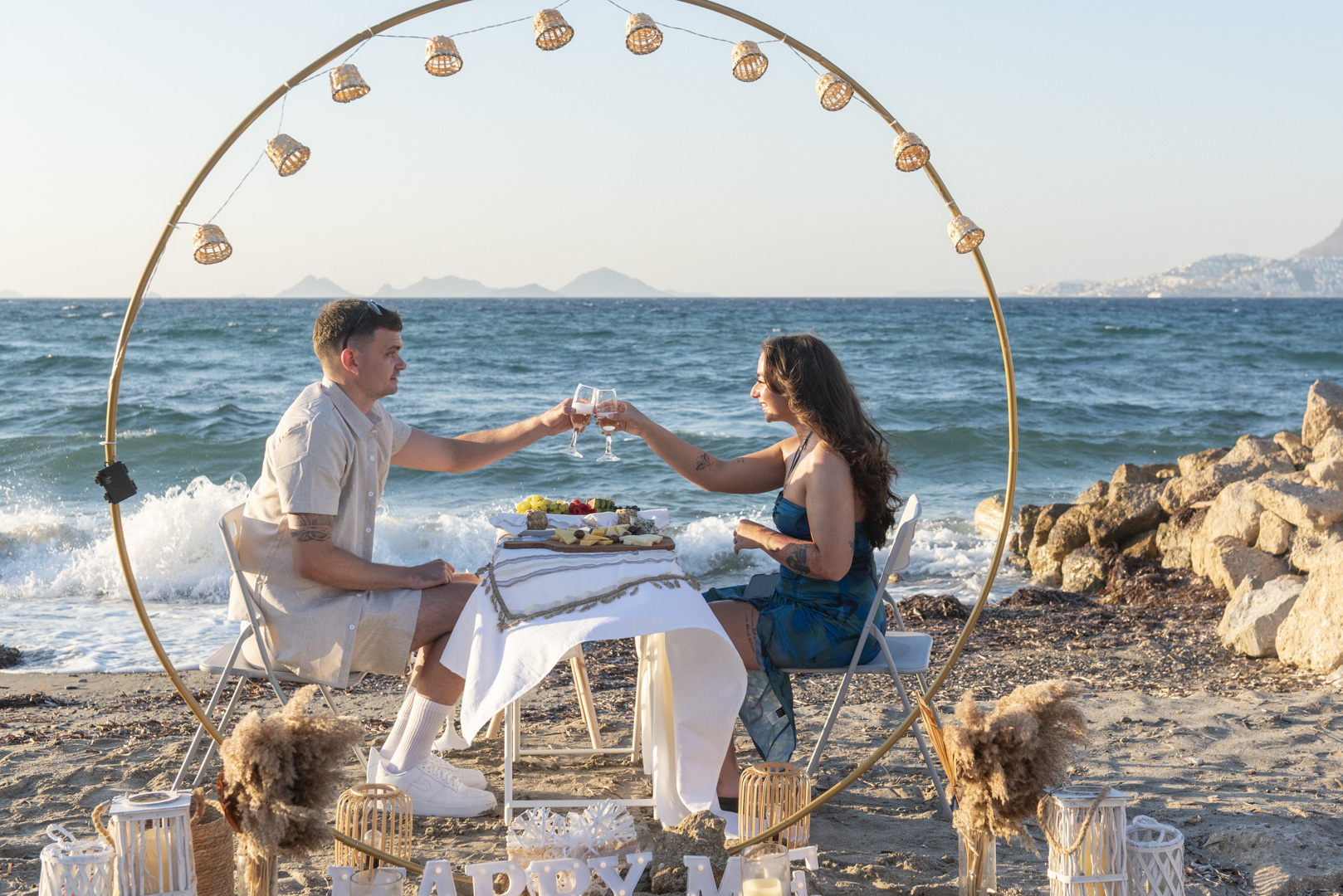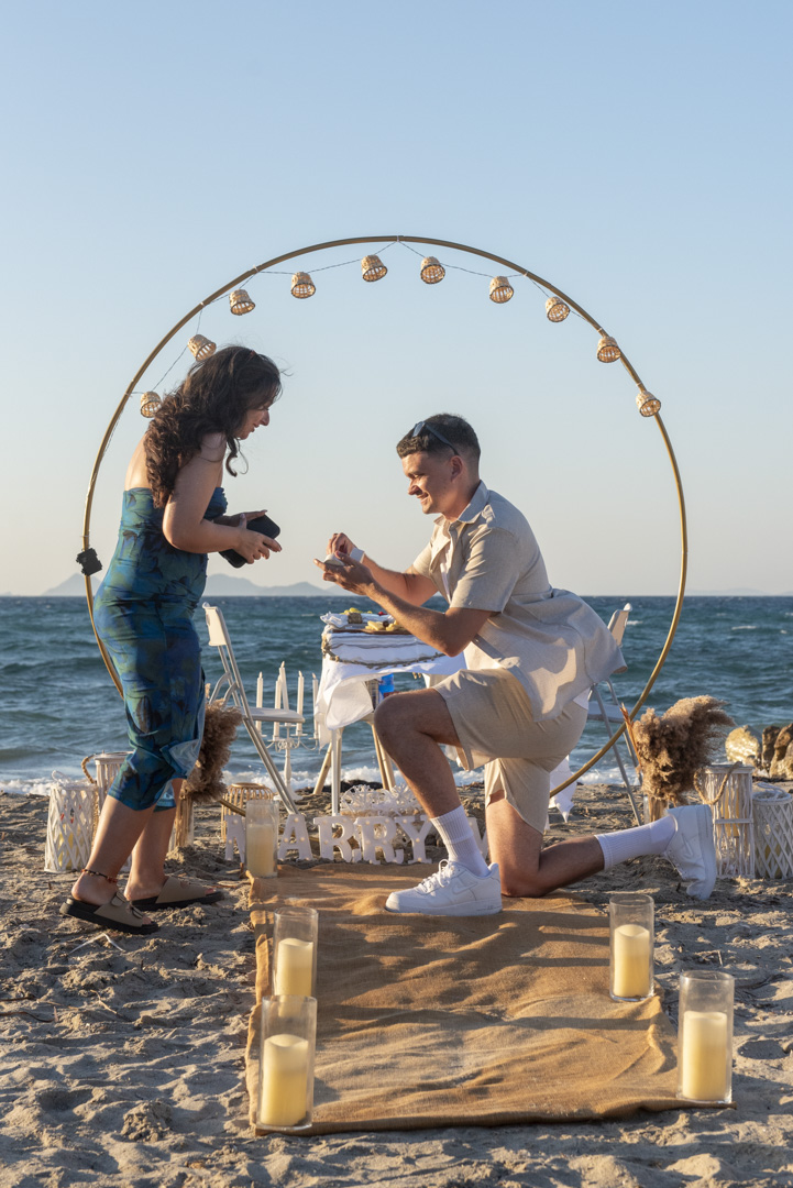 «Do you plan on getting engaged in Kos? We can create unforgettable memories for a lifetime with decor that exudes romance, Sparkling wine prosecco to toast your love, fresh fruits to sweeten the moment, and candles to set the mood. Imagine a picturesque setting, with the sun setting over the Aegean Sea, casting a warm glow over the entire scene. Our team of experts will work with you to craft a bespoke proposal that speaks to your unique love story. From the moment you step onto the island, you’ll feel the magic in the air. Let us help you make this special moment one that you and your partner will cherish forever. Contact us to start planning your dream engagement in Kos today!»
